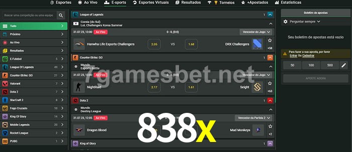 A aposta 838x oferece aos jogadores a experiência mais conveniente de apostas em eSports!
